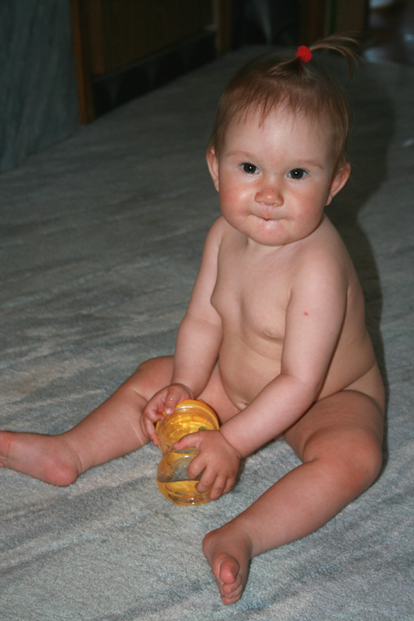 За месяц я научилась вставать у чего попало. Садиться из четверенек. Говорить га-га, да-да, ба-ба. Ба-ва. И вообще петь разные песни. Но самое главное - я научилась делать - ам! Только мама не всегда успевает за мое "ам" попасть мне в рот целой ложкой. Но это не беда. Все кругом очень рады.